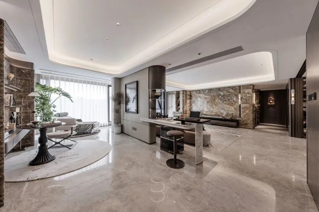 奢石、木饰、皮革、大理石的复合运用,跳脱出高端住宅的审美同质化困局,传递出更具国际视野的美学语汇。