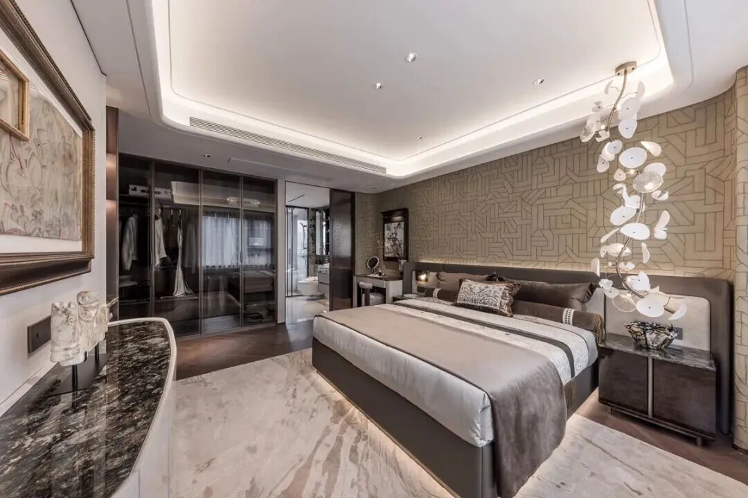 南向双套房设计,妥帖回应多代家庭的居住需求;奢华酒店级主卧套房,配备双台盆卫浴系统,超大开间尺度极大释放了采光与观景界面。